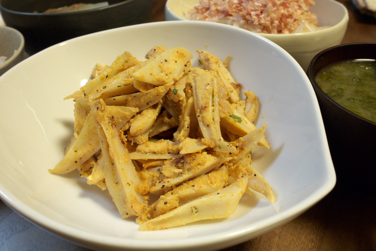 他は大根の煮物、大根サラダ、エリンギとネギとアオサの味噌汁。