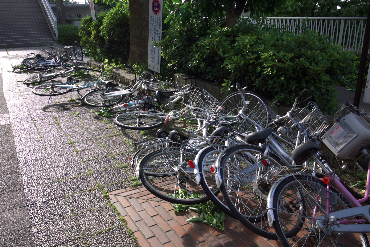昨夜の夜遅くに台風が通り過ぎました。 駅前の路駐チャリもこのとおり。 人形町では黒猫に会いました。 店の勝手口で座りました。これはご飯待ちですね。