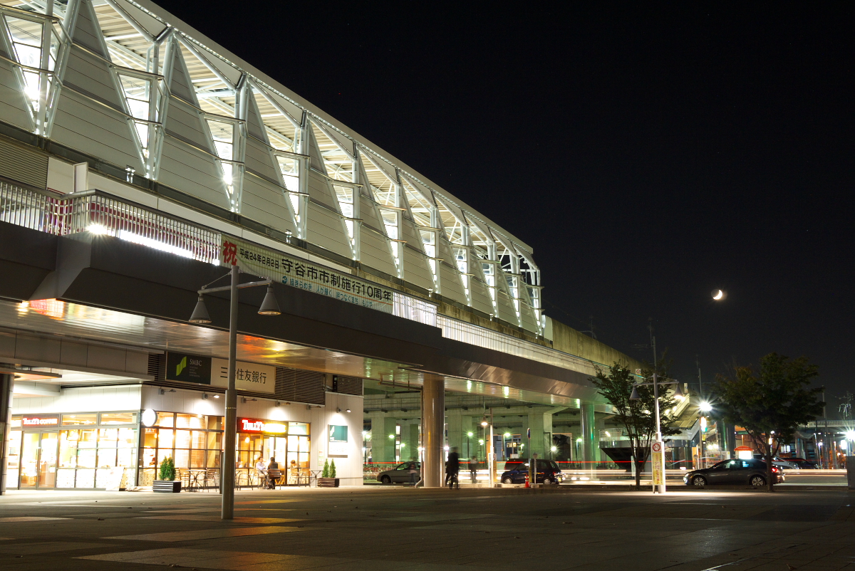 夜の守谷駅。