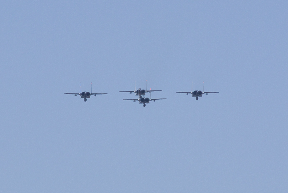 と、後方から爆音で真上を通り過ぎる自衛隊機が!