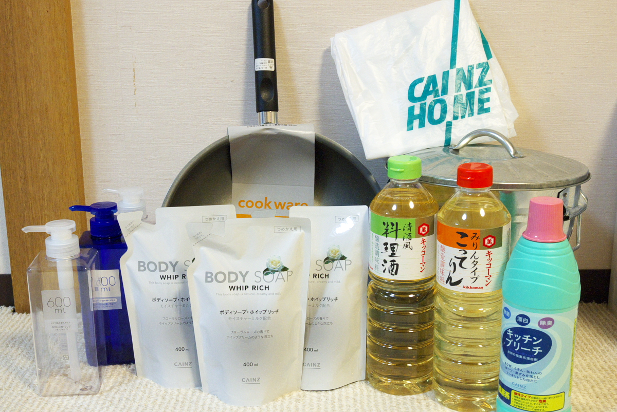 無事フライパンをゲットし、さらにカインズの優れたPB商品を発見してしまい、こんなに買ってしまった!