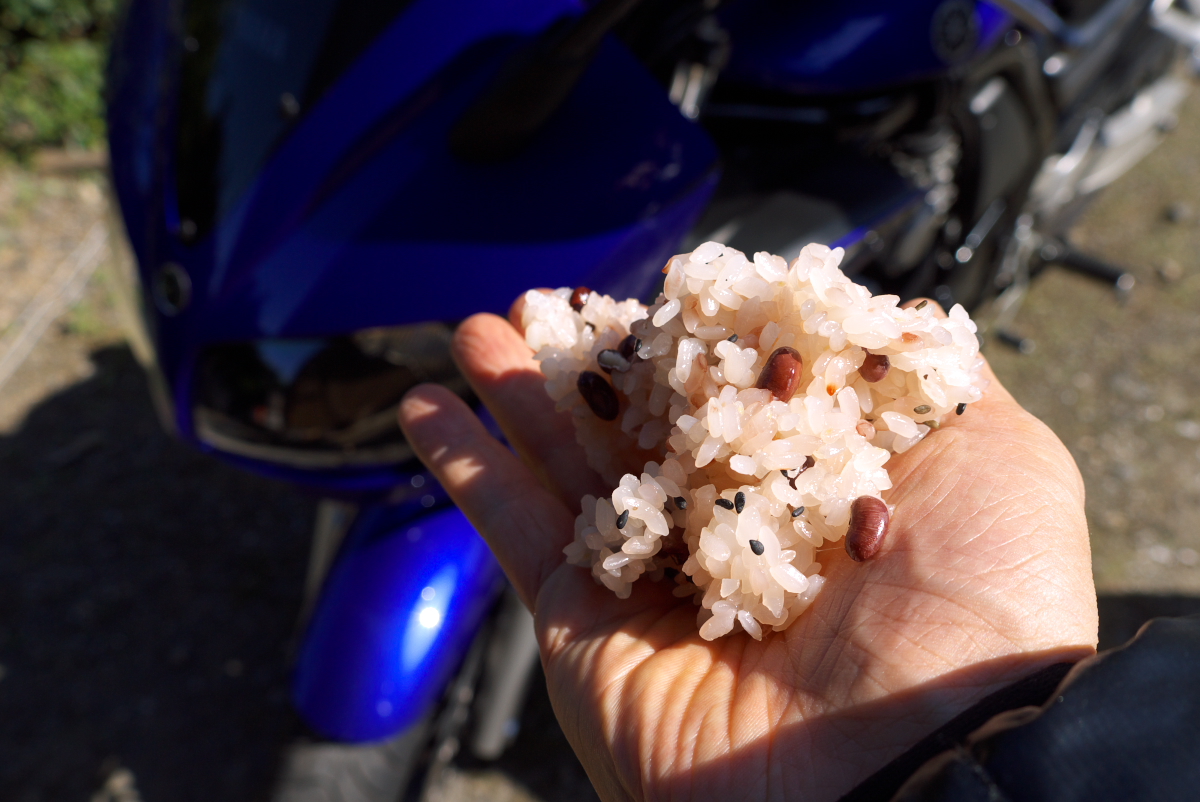 さらに、みかん園のおばちゃんが「赤飯作ってあるから食べてって!」としゃもじで渡されてしまった。