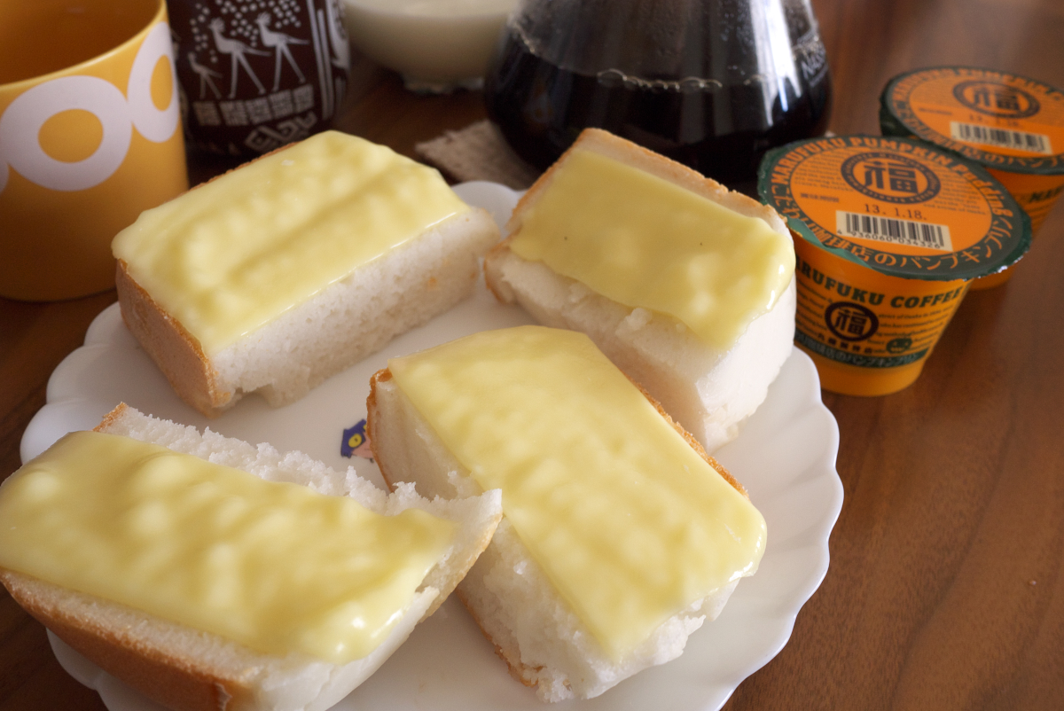 小麦パンのようにスライスできず、このように切ってチーズを乗せ!