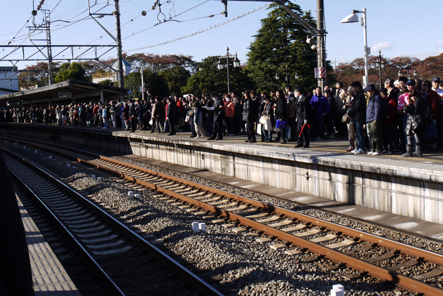 駅に着くとすごい人です。下り線からは一度踏み切りをわたる必要があるのでここで渋滞。