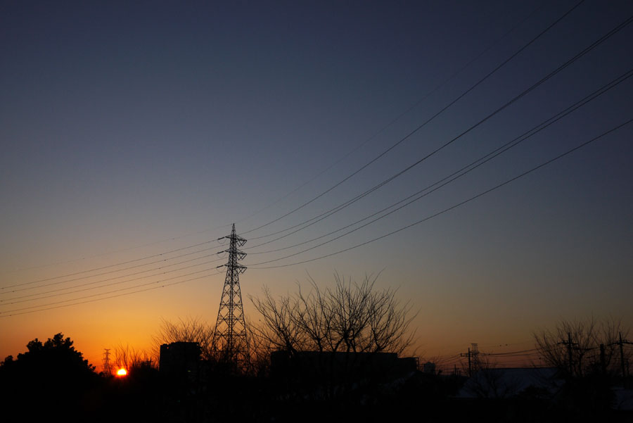バス停に向かうこの時間、ちょうど朝日が昇ってくる。