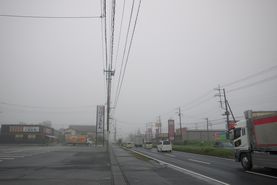 今朝は雨ではないが霧。