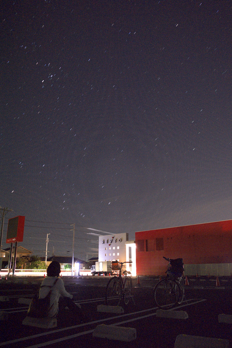帰り道、星がきれいだったので、閉店後のパチ屋駐車場でしばし撮影。