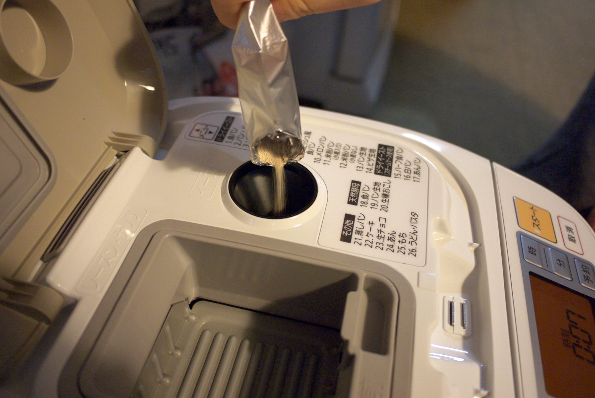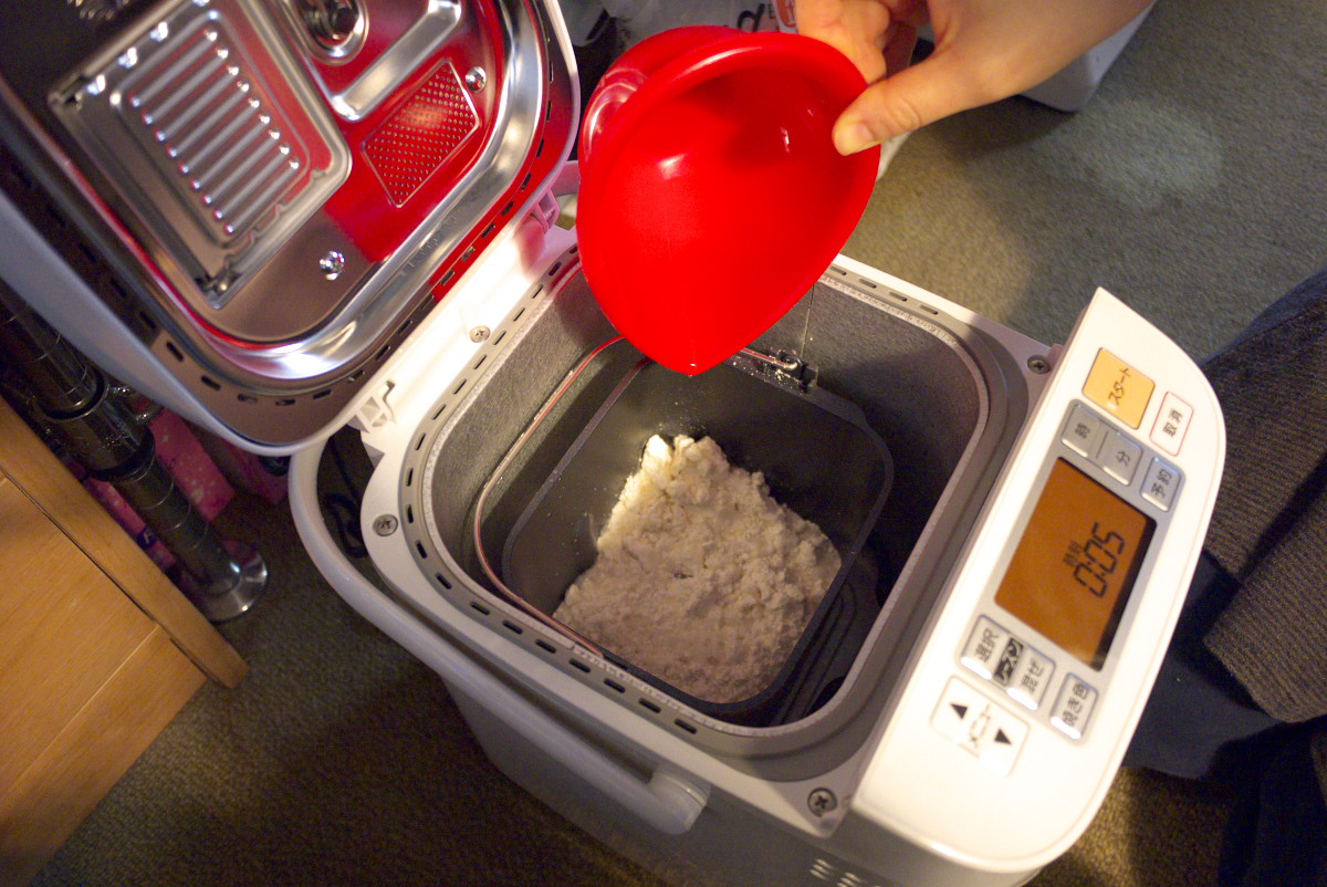 とは言っても、粉を入れ、水を入れ、ドライイーストを入れるだけ。
