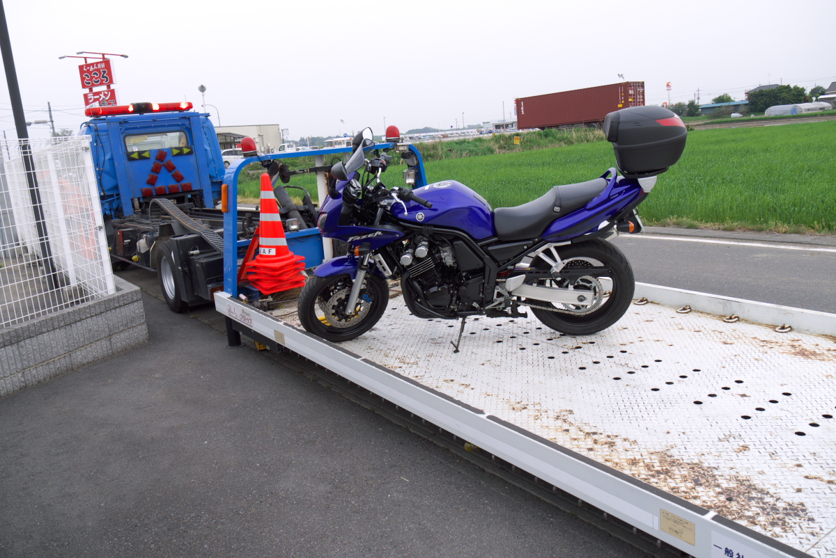 JAF車両が牽引車だったので、バイクを乗せられる車両の手配をお願いしました。