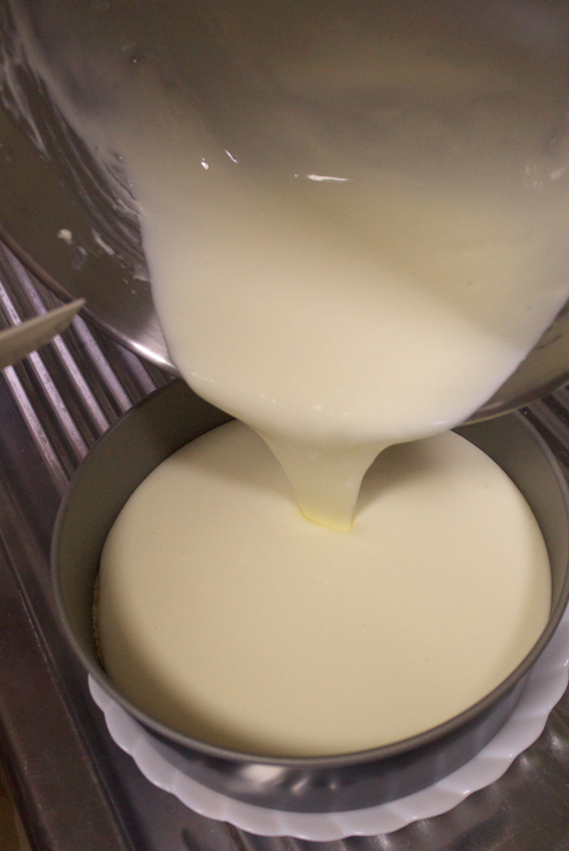溶かしたバターを混ぜた後に敷き詰めてヨメが作った生地を流し込む!!
