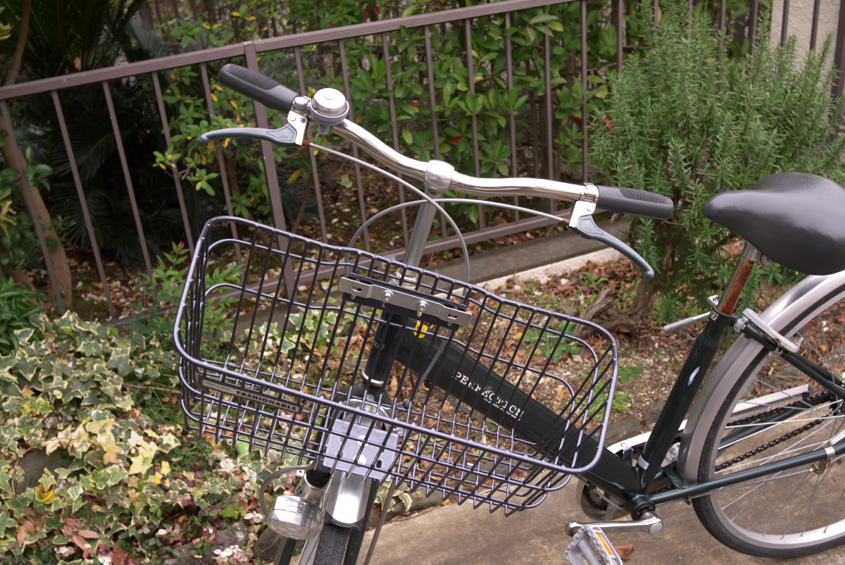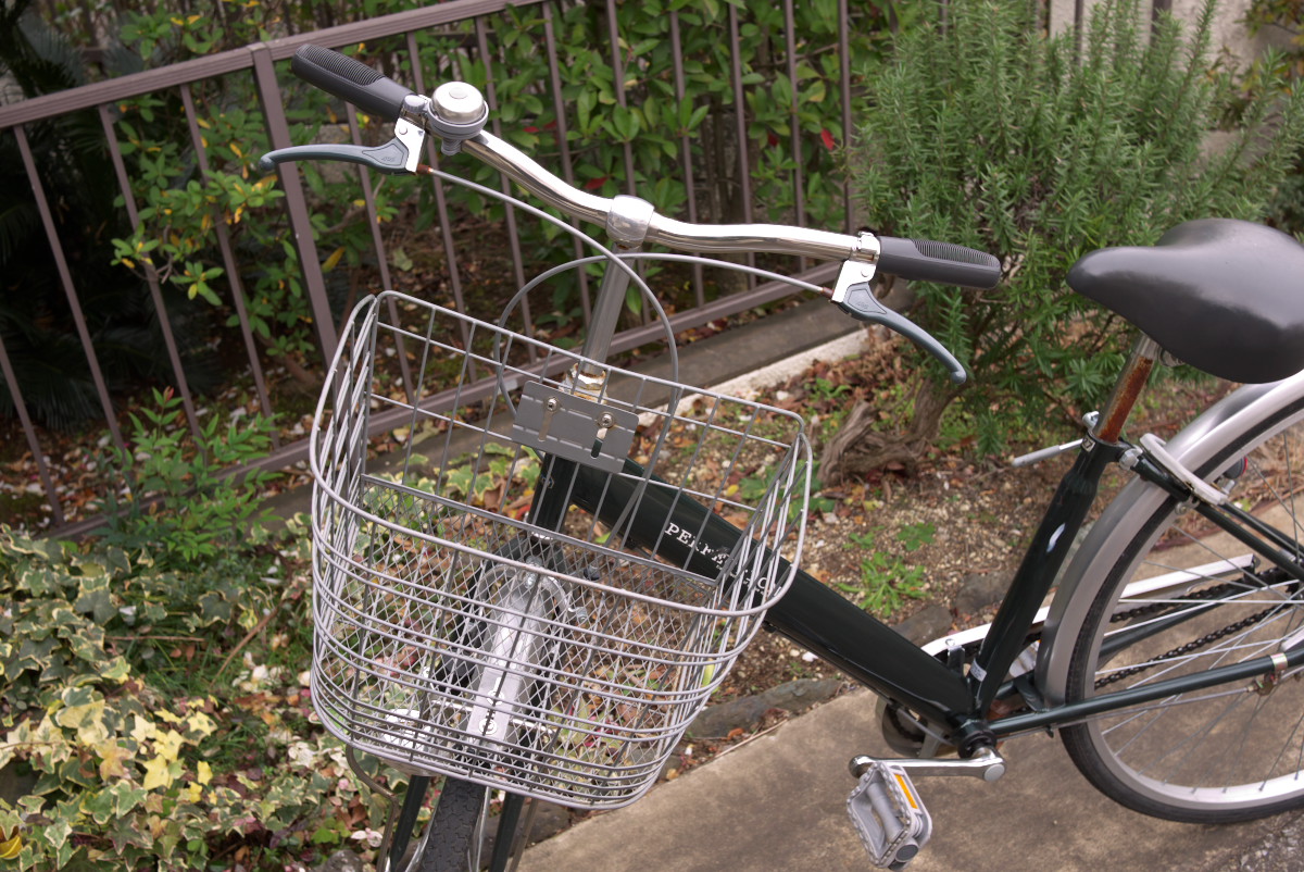 先日ヨメと守谷駅近くの自転車屋で、修理に持ち込まれたと思われるお客さんの自転車にこの横長のカゴが付いているのを目撃したんですよ。