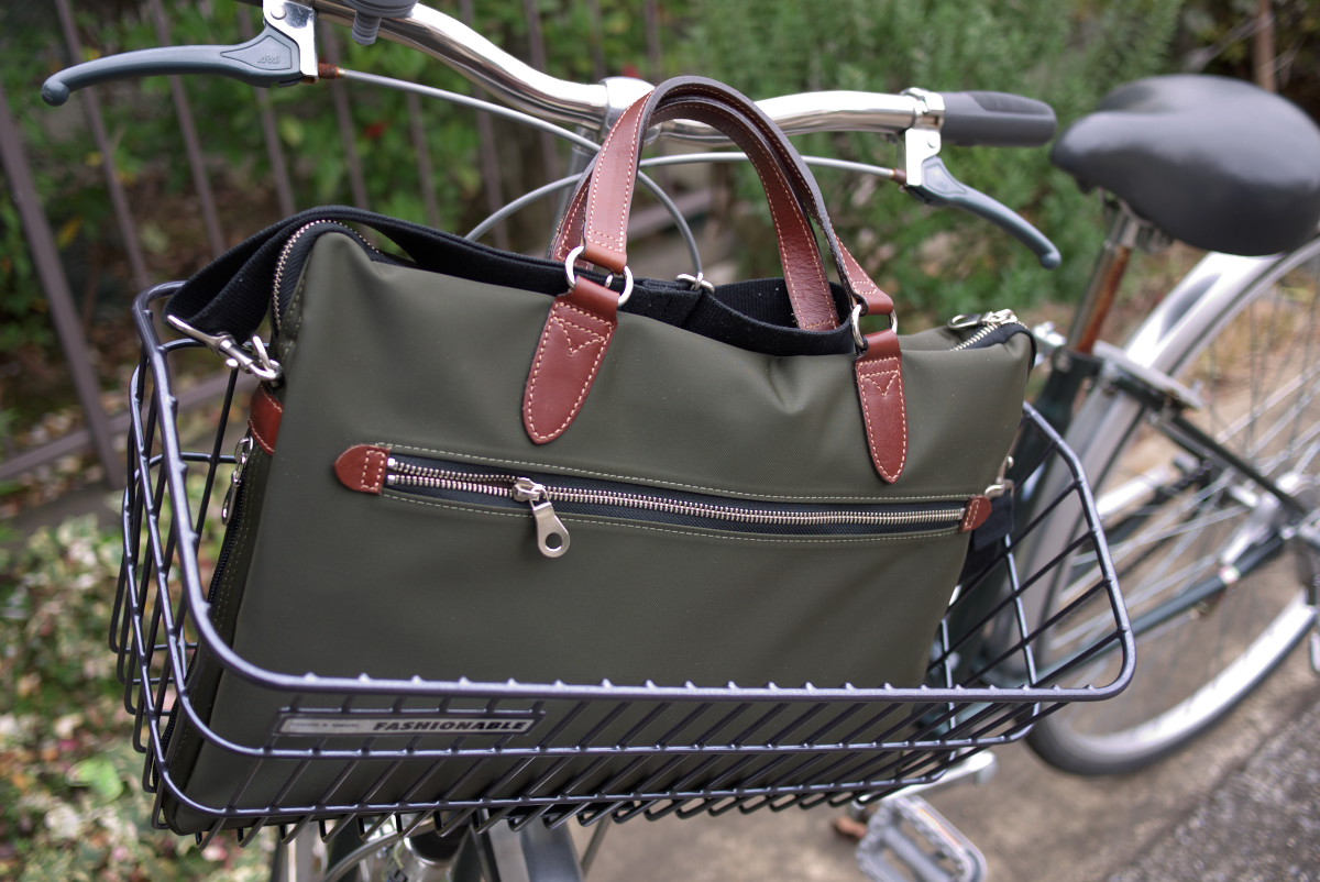 見ての通り横長のカゴなんですが、これにすると通勤かばんがそのままぴったり入る!!!