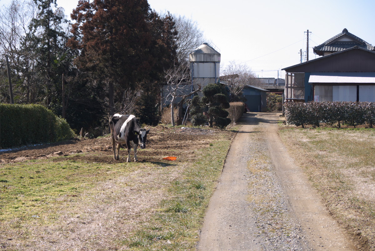 途中、牛さんが日向ぼっこしてました。
