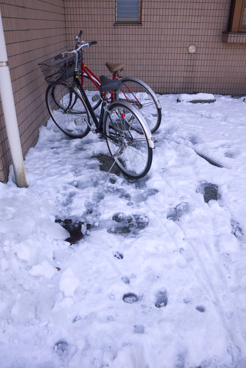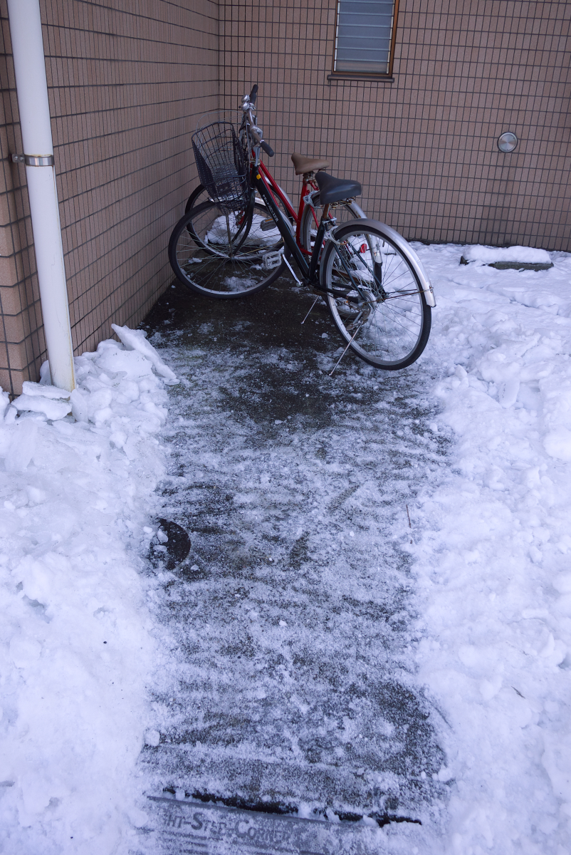 自転車移動も日の当たる場所を選んで走らないと行き先が巨大なアイスバーンなんてことになる・・・。