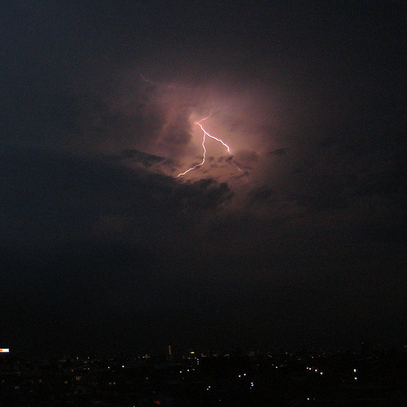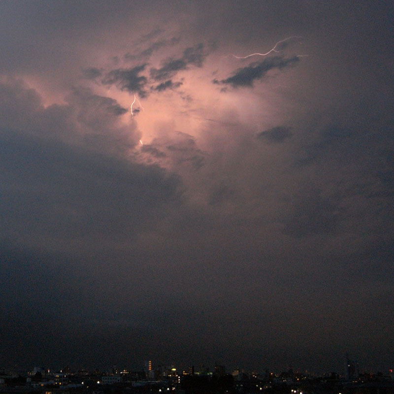 このでかい空を走る閃光にくらべて、眼下の都会の小さいこと。