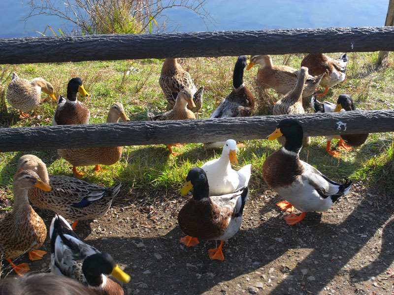 お腹もいっぱいで、アウトレットのほうに移動してのんびりしようということで移動です。途中矢ケ崎公園で鴨たちを眺めて大笑い。
