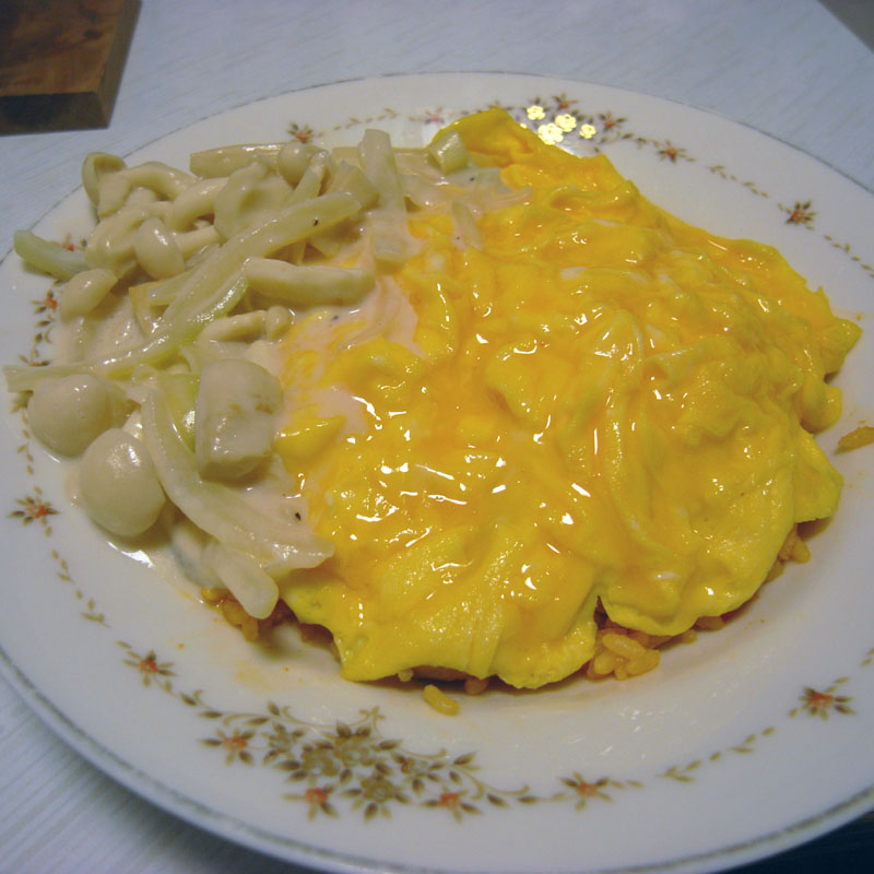 トロトロな状態でチキンライスに乗せて、さらにヨメの作ったクリームソースをかけた!!
