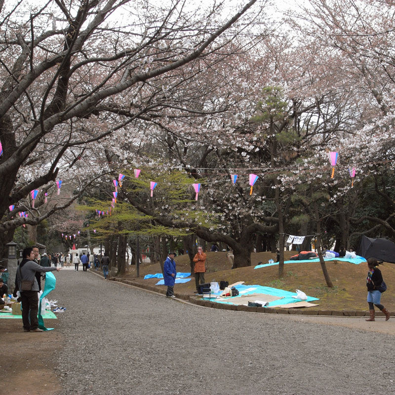 花見をしている人も、花見の場所取りをしている人も寒そう・・・