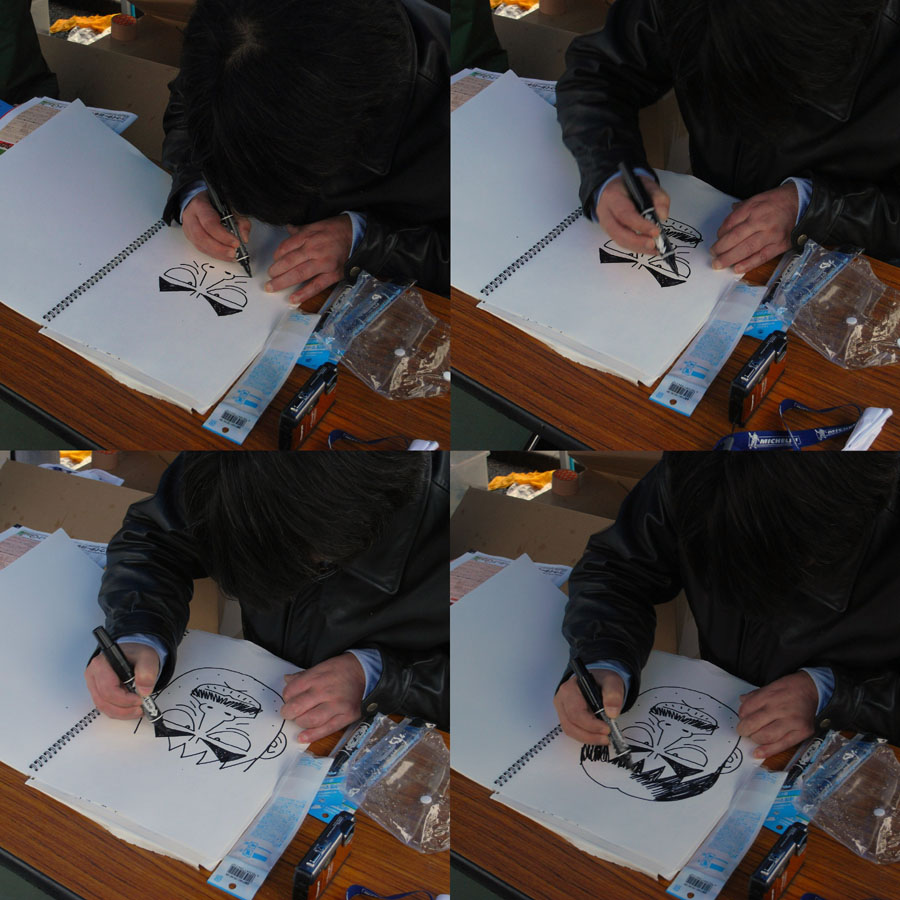 さらにムサシ画伯もいて、リクエストしたら寒い中ペンを取ってくれました!
