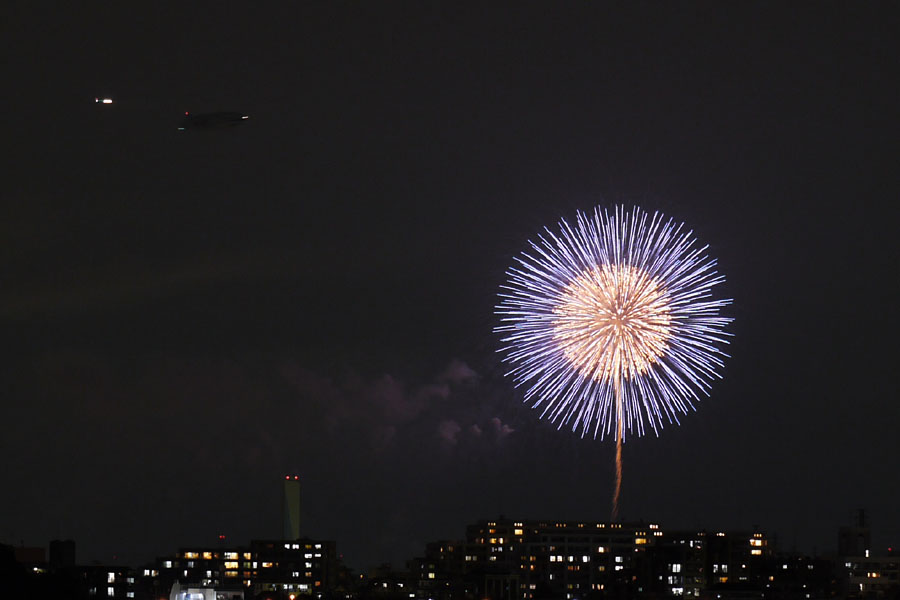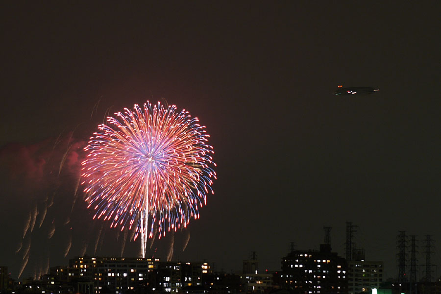 夕飯前にマンションの階段を6階まで登り、花火を見ました。