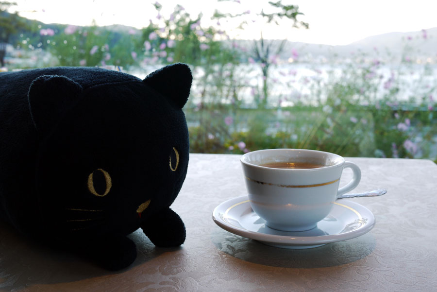 諏訪湖でコーヒータイム。