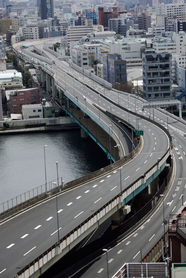 一台も走っていない首都高も静かに建っている。