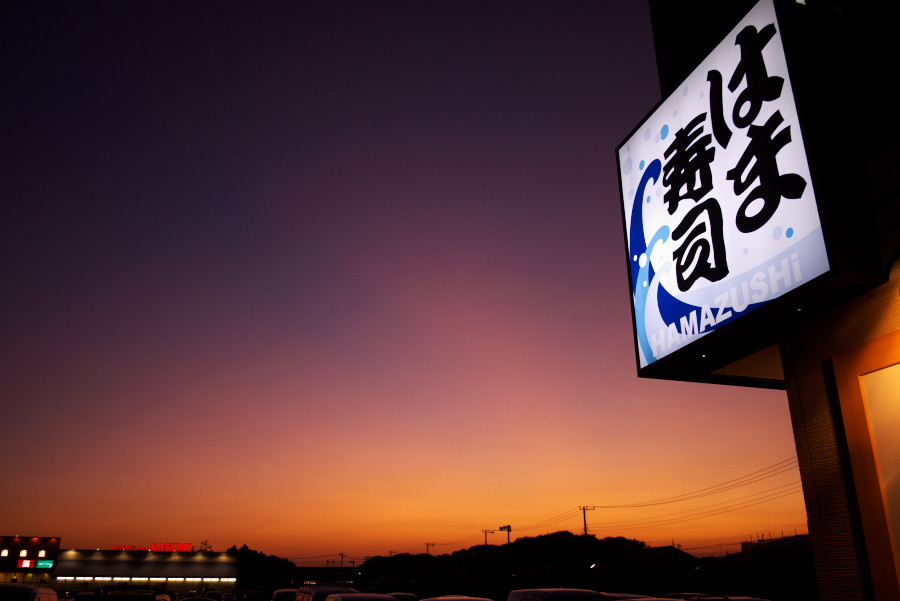 ゆる~く店を見た後、きれいな夕焼け眺めつつ回転寿司へ吸い込まれました。