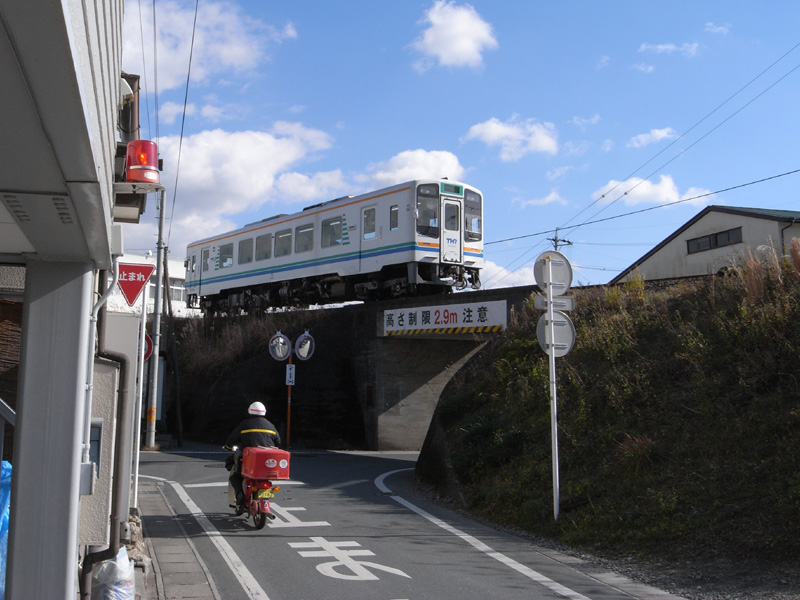 すぐ脇を天竜浜名湖鉄道が走っています。単線ディーゼルの1両編成が走り抜けていきました。