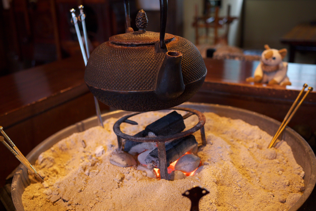 ここ「蕎鈴庵(きょうりんあん)」は古民家を改装した建物なのだが、真ん中に囲炉裏ですよ!!!