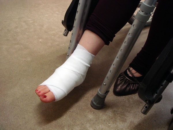 捻挫して松葉杖で帰ってくるとは、笑っちゃいけないけど、笑えます。