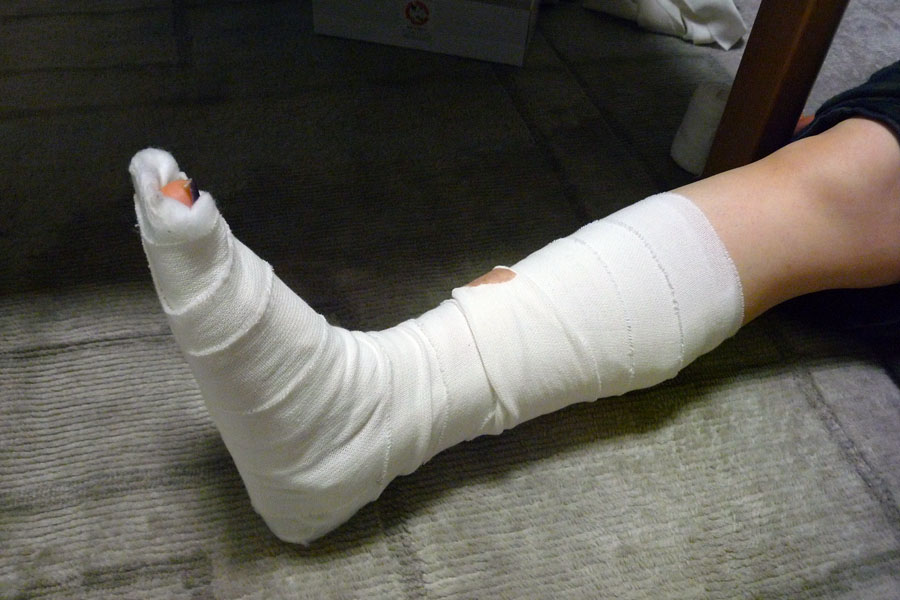 全く動けないようで、右足を確認すると、数センチはあろうかというコブが足のこうにできています。